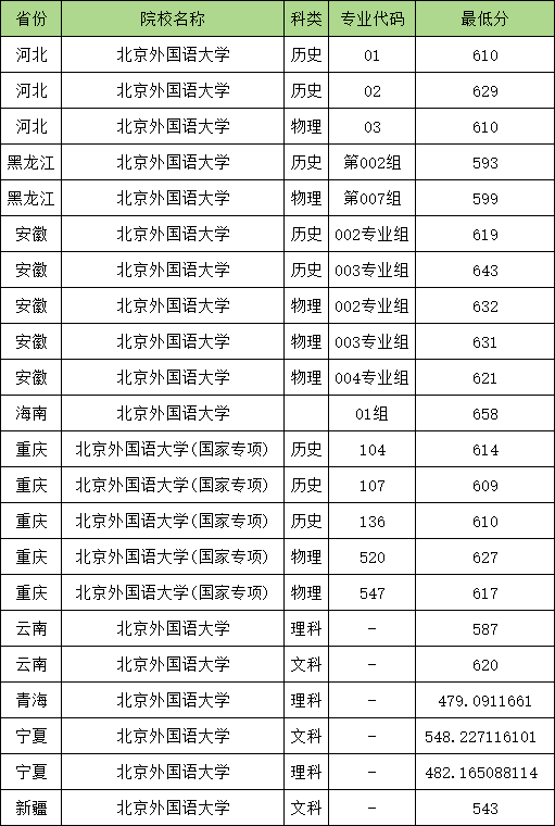 下文将展示北京外国语大学在全国各个省份的国家专项计划最低录取分数线,希望能帮助到2025年要报考北京外国语大学国家专项计划的高考生。