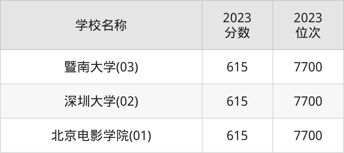 回看2023年北京高考最低分为615分的文科大学名单,有3条数据。