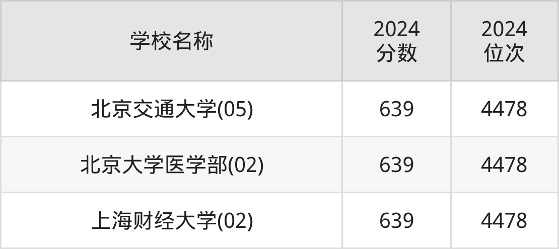 其中,639分位于北京的学校有北京交通大学、北京大学医学部。