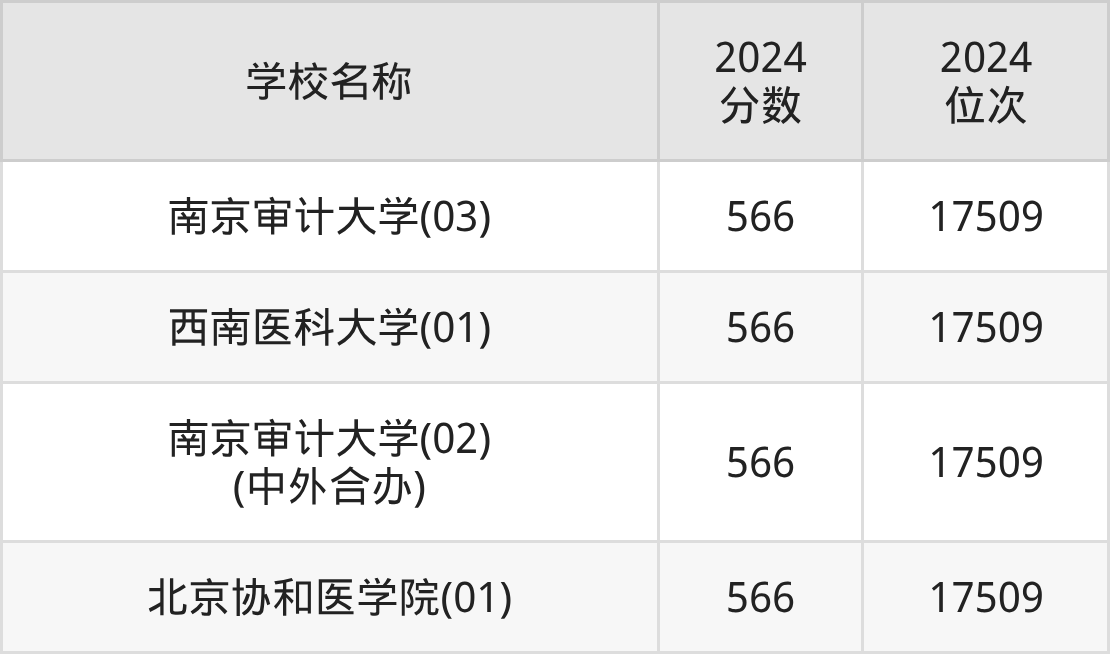| 重庆医科大学(03) (中外合办) | 566 | 19949 |