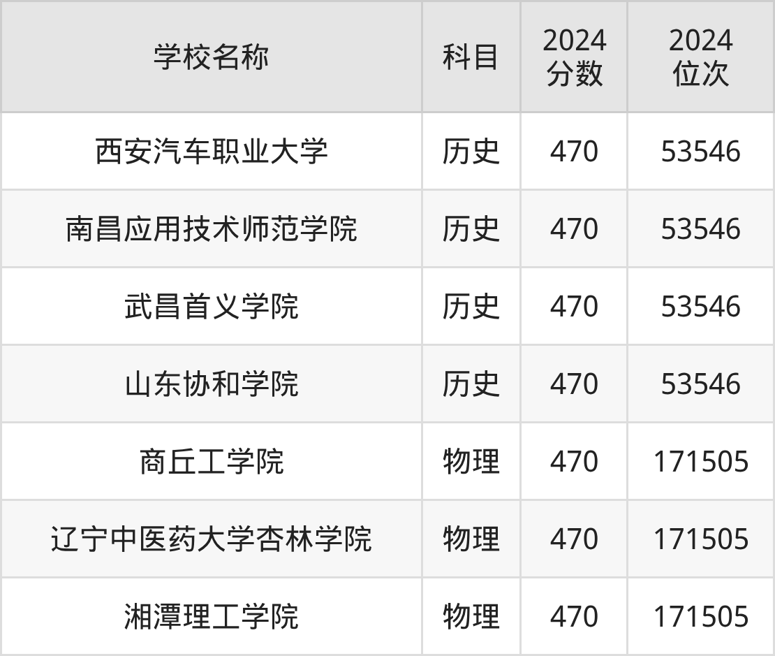 其中,物理组470分位于河南的学校有商丘工学院。历史组470分位于陕西的学校有西安汽车职业大学。