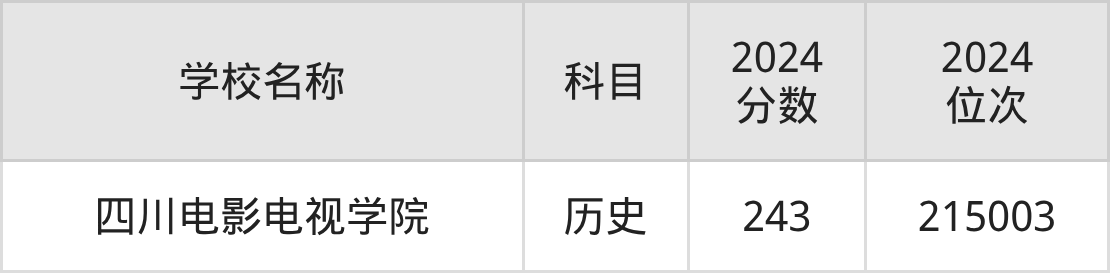 其中,历史组243分位于四川的学校有四川电影电视学院。
