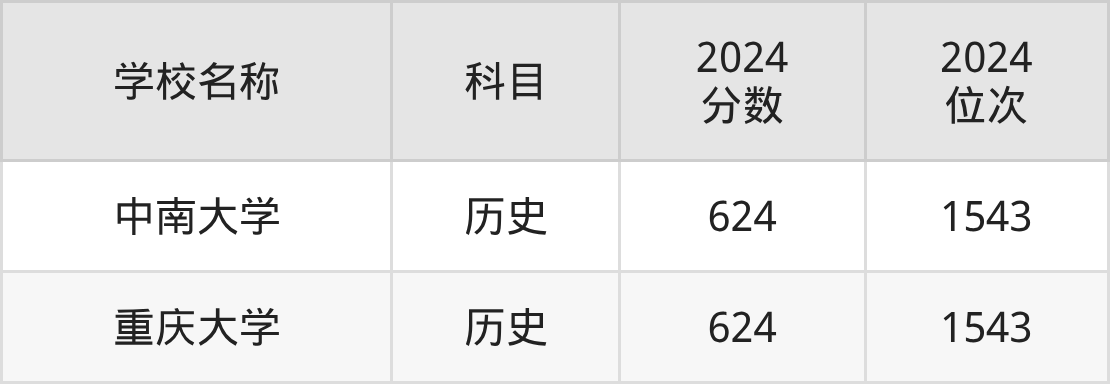 | 中南大学 | 历史 | 627 | 1789 |