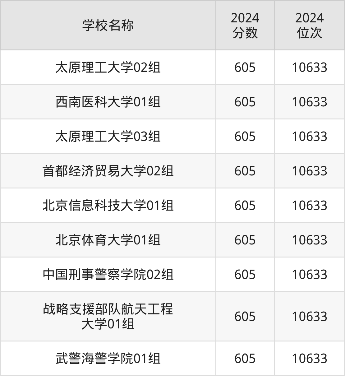 其中,605分位于北京的学校有首都经济贸易大学、北京信息科技大学、北京体育大学。