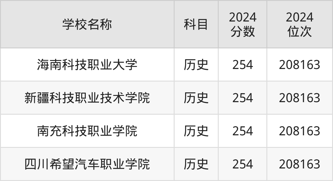 其中,历史组254分位于海南的学校有海南科技职业大学。