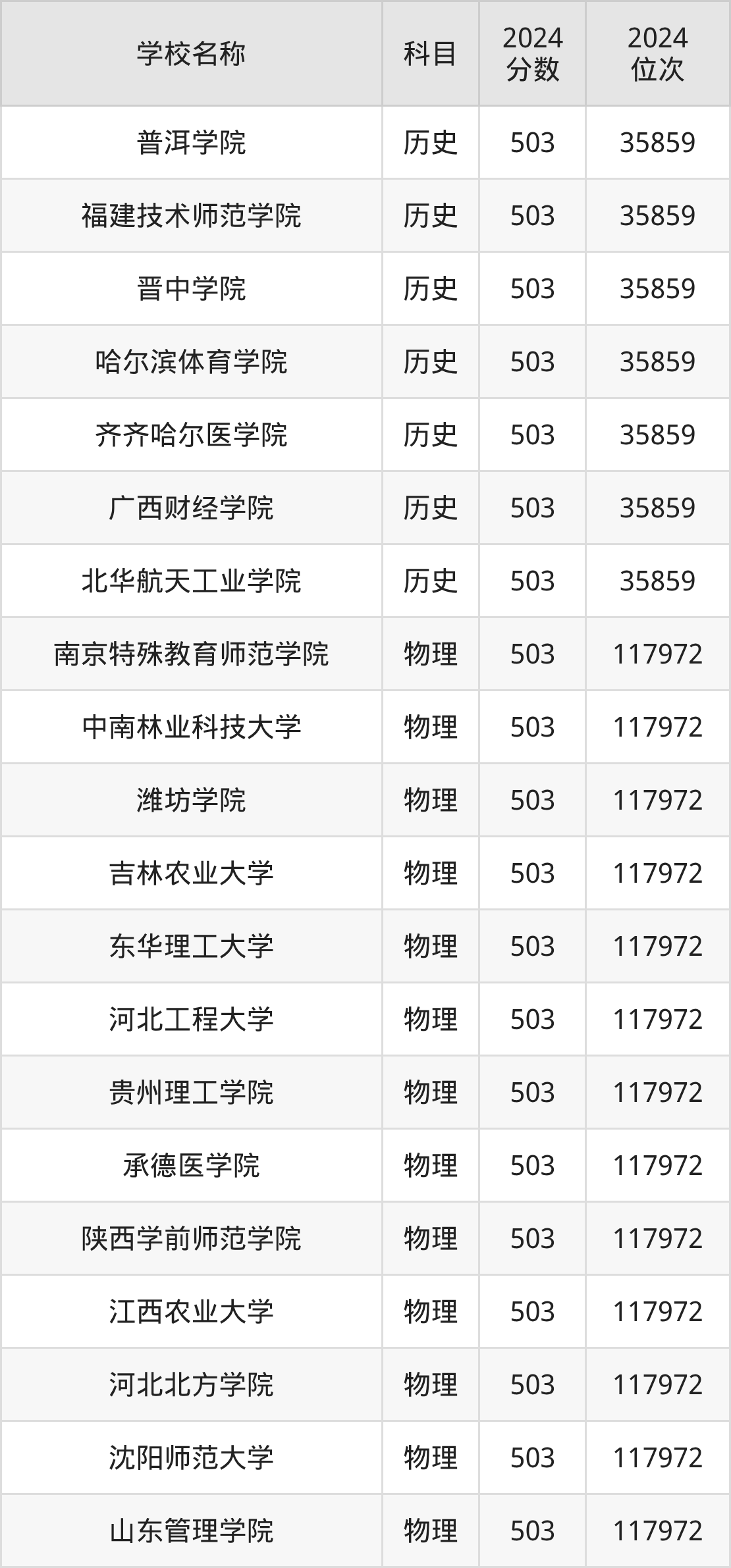 其中,物理组503分位于河北的学校有河北工程大学、承德医学院、河北北方学院。历史组503分位于河北的学校有北华航天工业学院。
