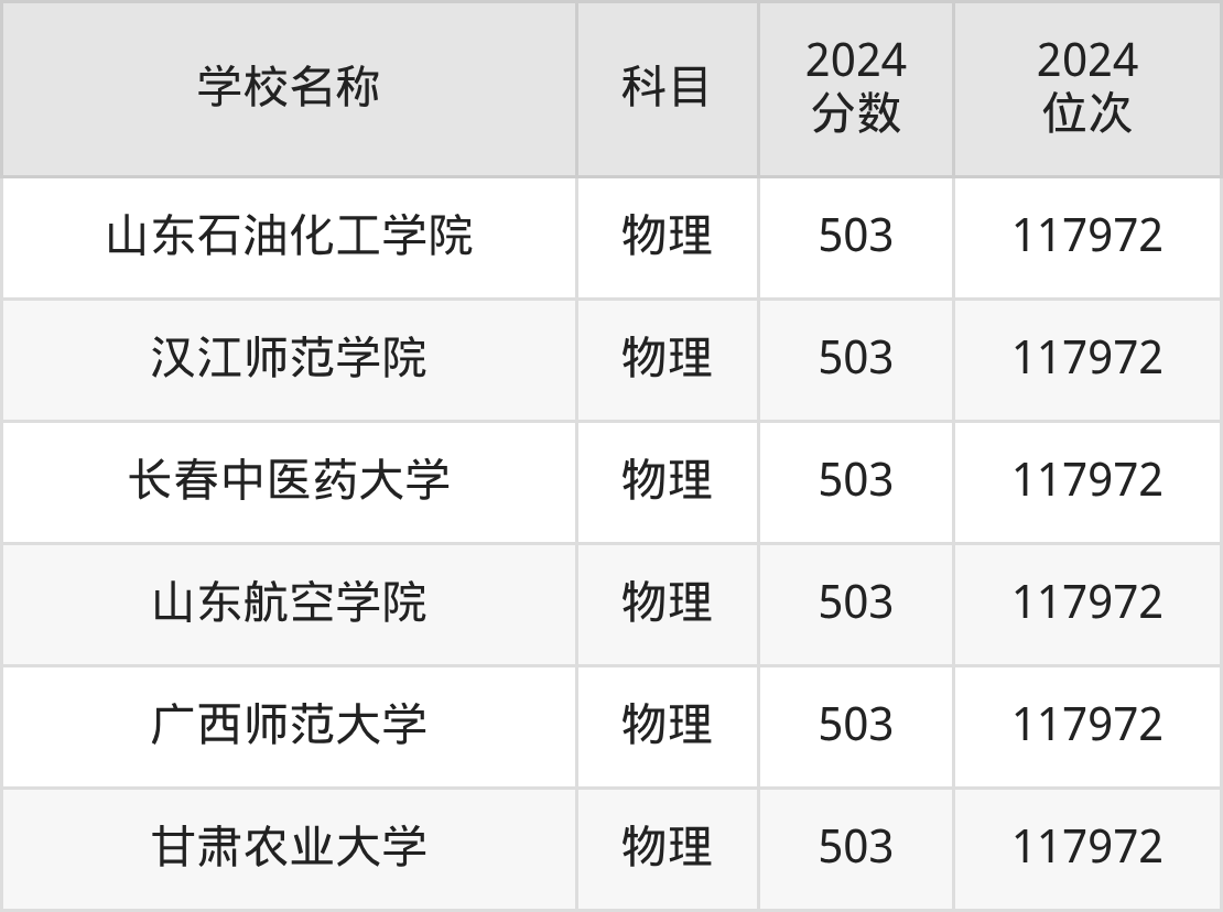 | 白城师范学院 | 物理 | 503 | 155469 |