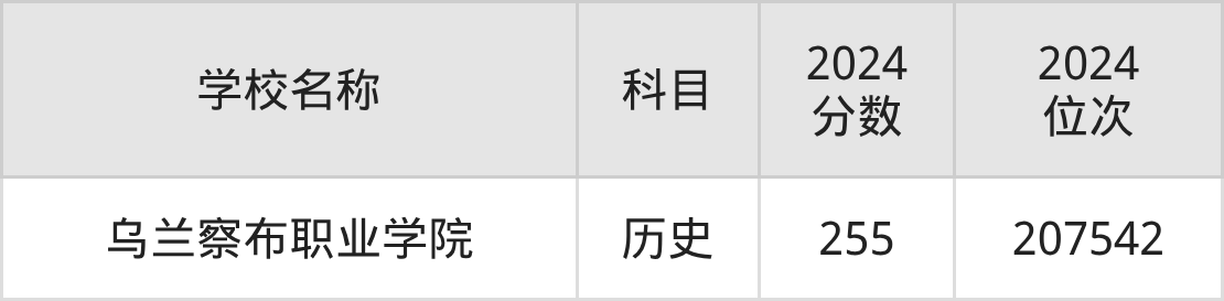 其中,历史组255分位于内蒙古的学校有乌兰察布职业学院。