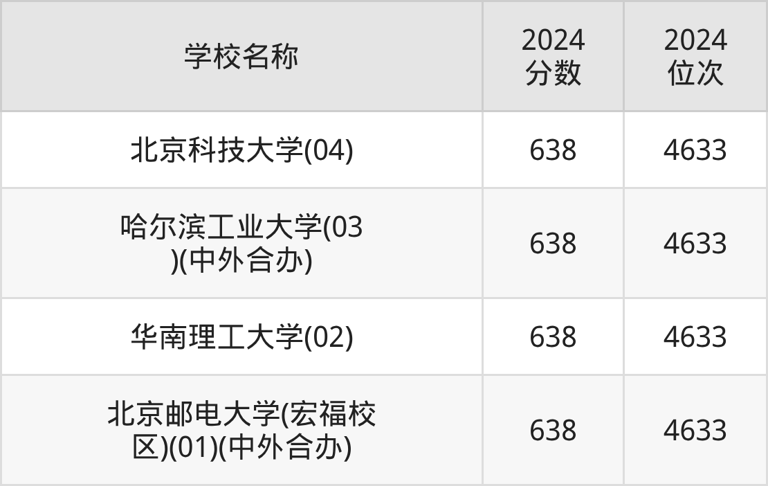 其中,638分位于北京的学校有北京科技大学、北京邮电大学(宏福校区)。