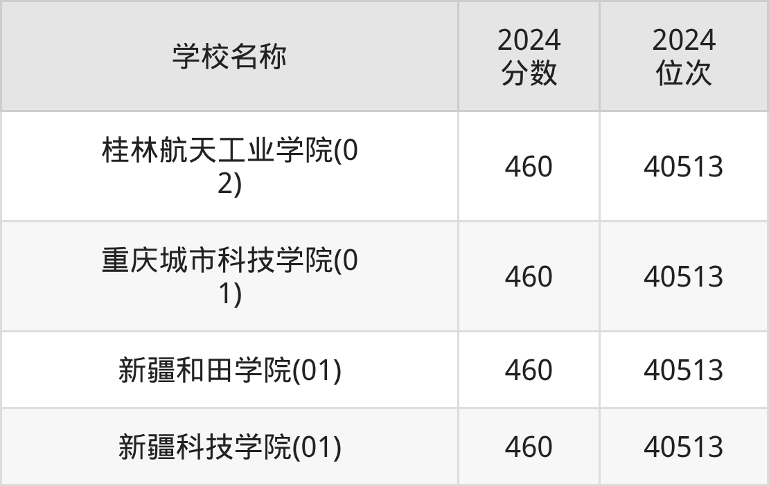 | 山西晋中理工学院(0 1) | 460 | 40206 |