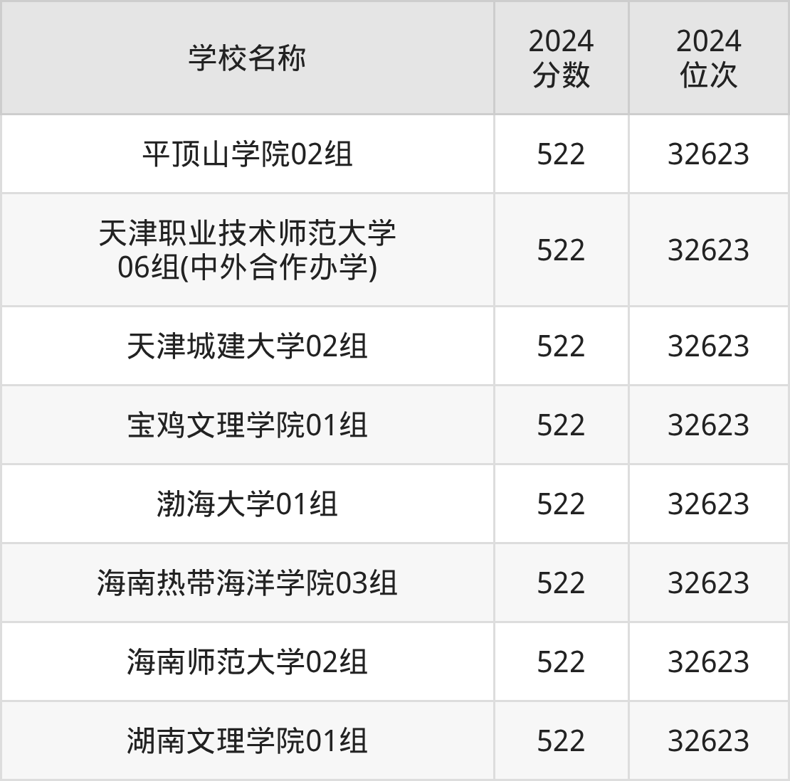 其中,522分位于天津的学校有天津职业技术师范大学、天津城建大学。