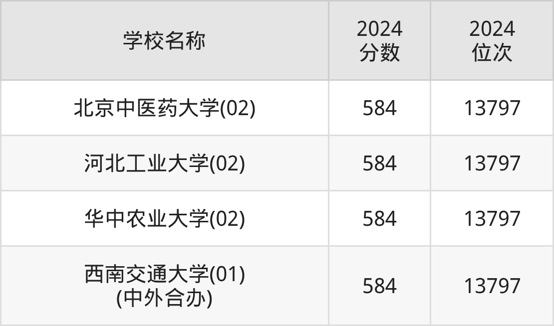 本文整理了2025年北京高考最低录取分数线为584分的全部理科大学名单,共计2个院校专业组。