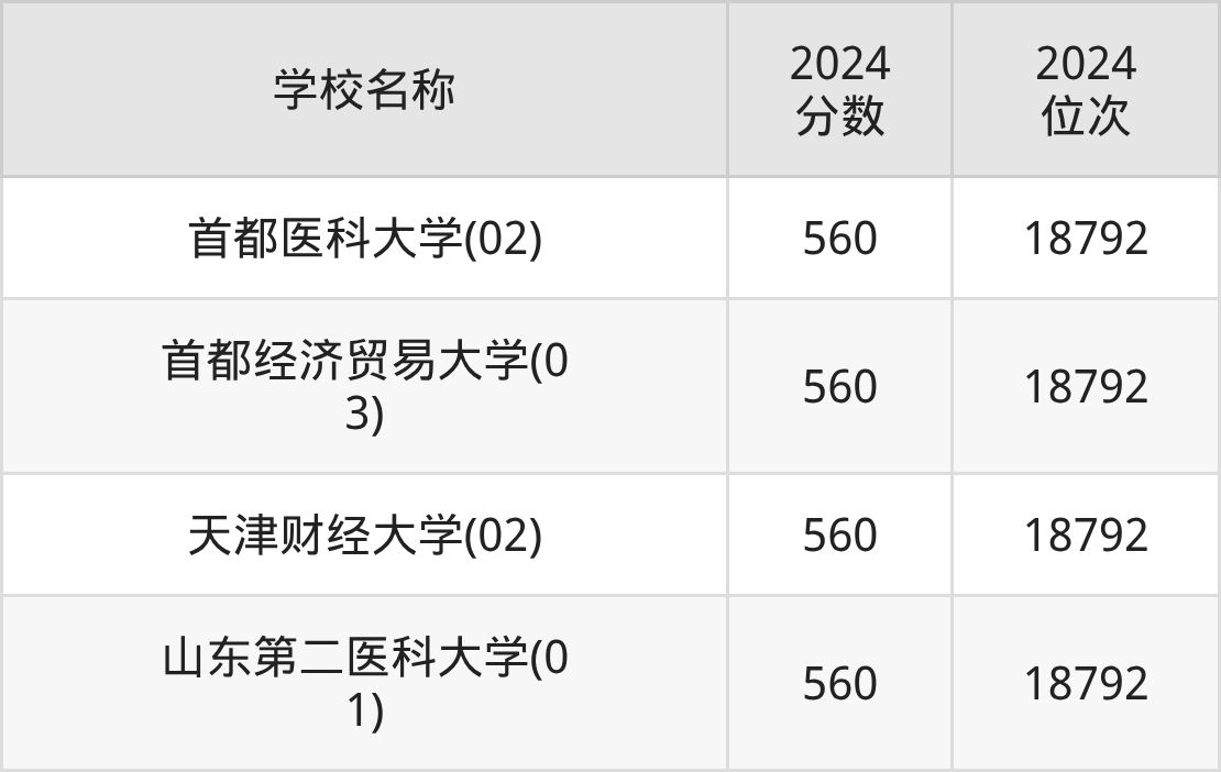其中,560分位于北京的学校有首都医科大学、首都经济贸易大学。