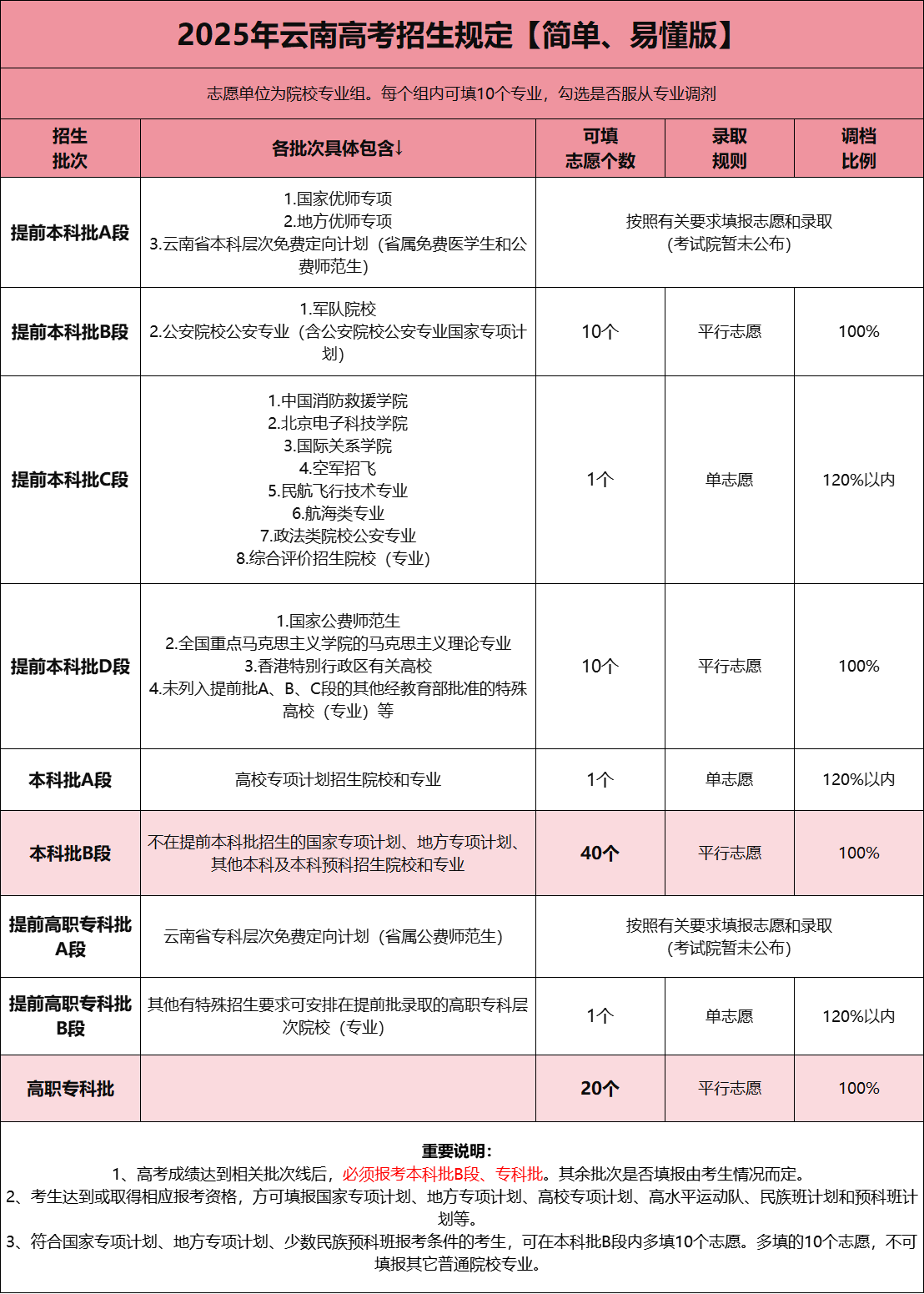 2026年云南本科提前批B段、本科提前批D段的录取规则是平行志愿;云南本科提前批C段、专科提前批B段的录取规则是单志愿。下文将为大家详解!