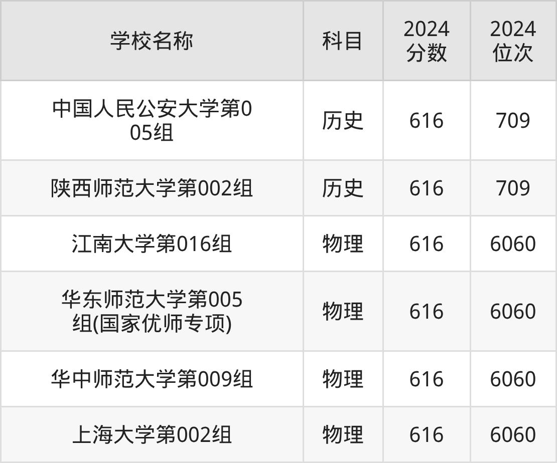 其中,物理组616分位于上海的学校有华东师范大学、上海大学。历史组616分位于上海的学校有中国人民公安大学。