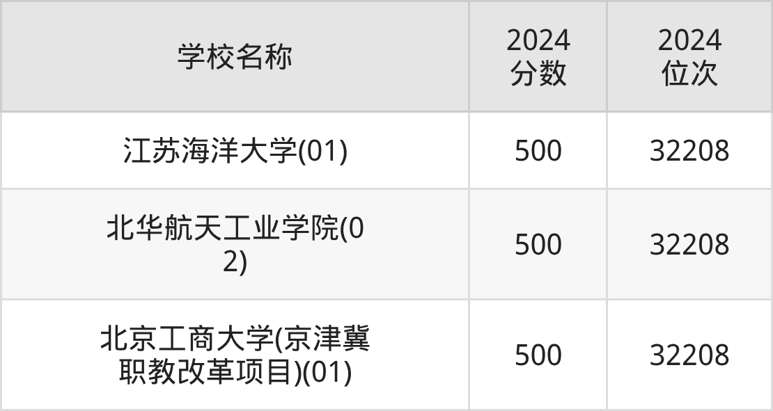 其中,500分位于北京的学校有北京工商大学(京津冀职教改革项目)。