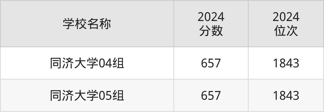 其中,657分位于上海的学校有同济大学。