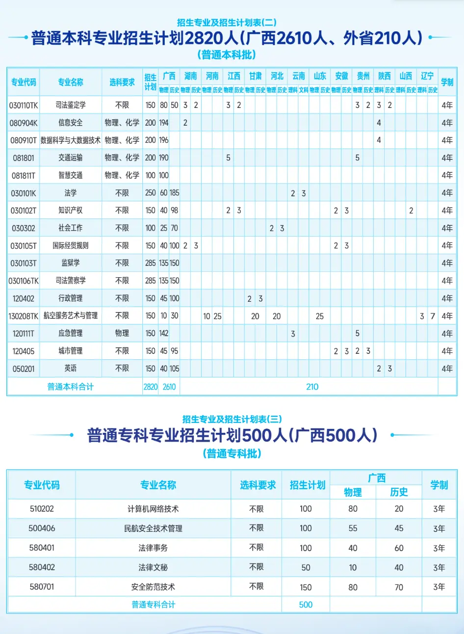 三、广西警察学院2025年招生计划