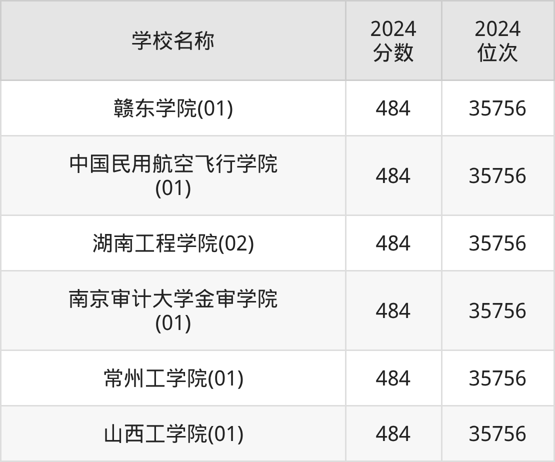 其中,484分位于江苏的学校有南京审计大学金审学院、常州工学院。