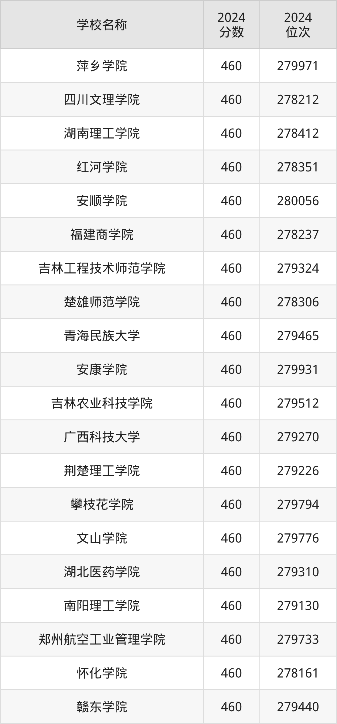 其中,460分位于江西的学校有萍乡学院。