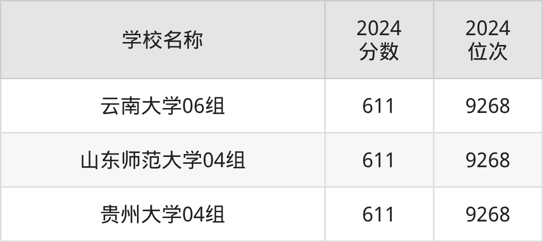其中,611分位于云南的学校有云南大学。