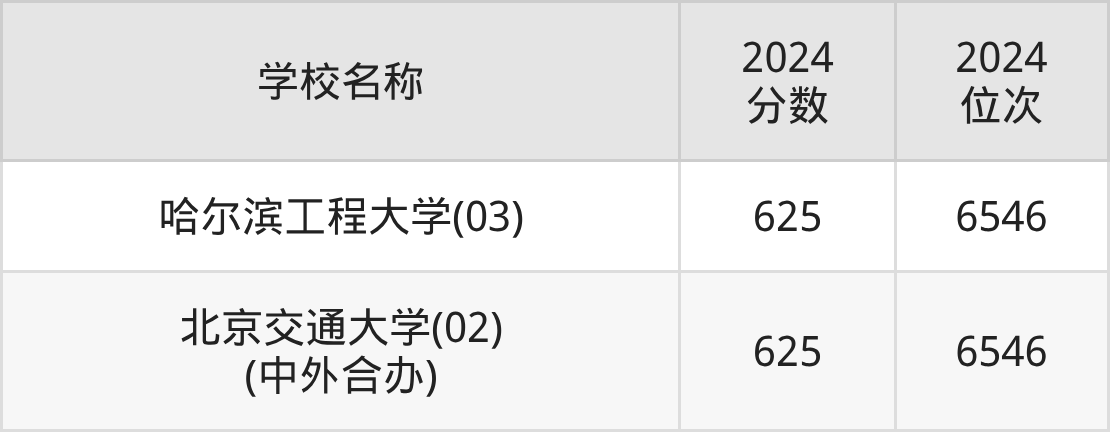 | 哈尔滨工业大学(02 )(中外合办) | 625 | 6045 |