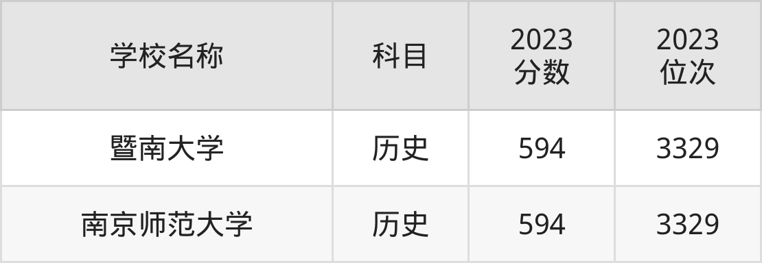 | 华南师范大学 | 历史 | 597 | 4770 |