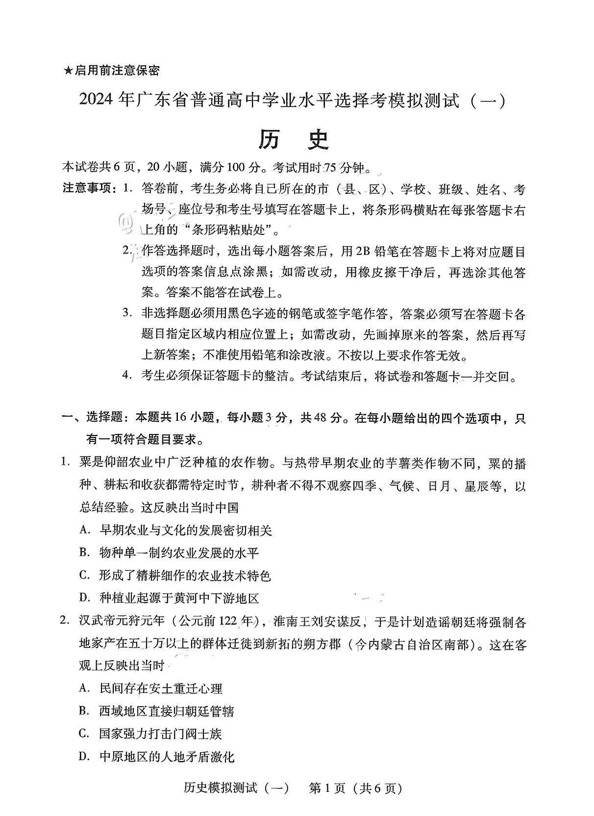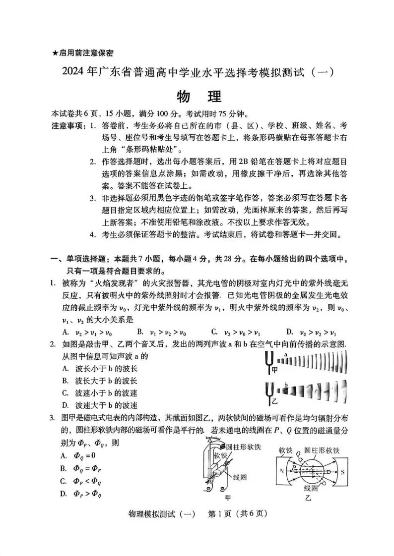 二、2026广东一模各科目答案及试卷汇总