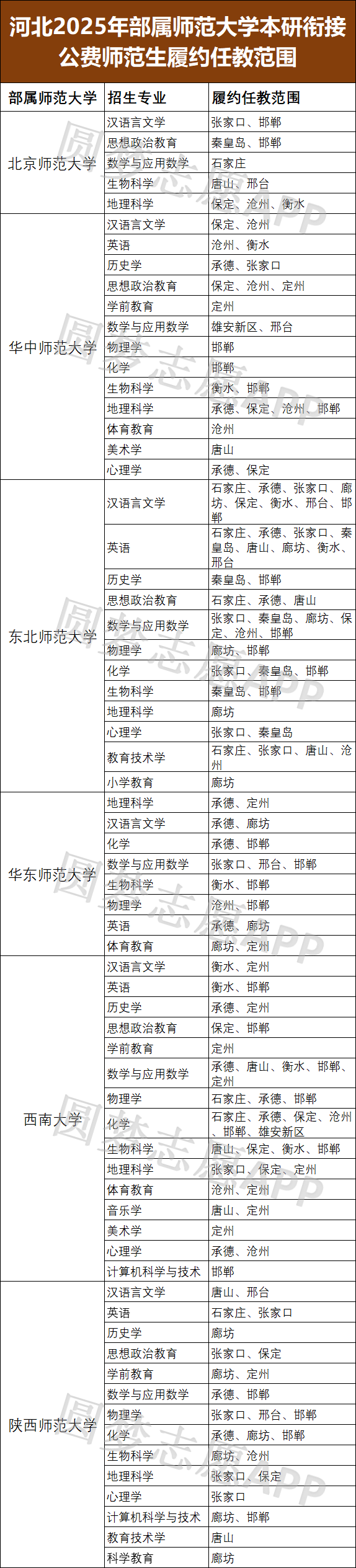 以下为2025年河北部属公费师范生履约任教区域整理,2026届考生在选择院校和专业时可重点参考。