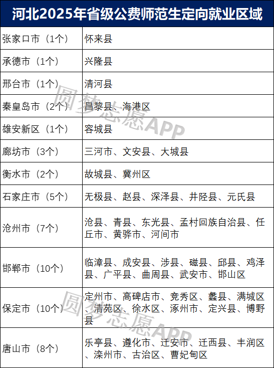 以下为2025年河北省属公费师范生主要定向就业区域整理,供考生和家长提前了解: