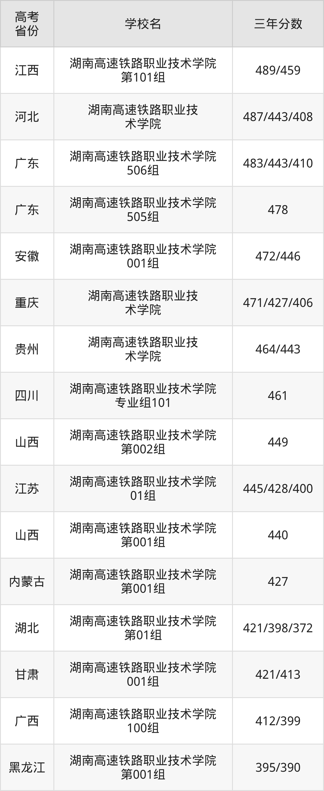一、湖南高速铁路职业技术学院近三年录取分数线及位次(湖南历史类)