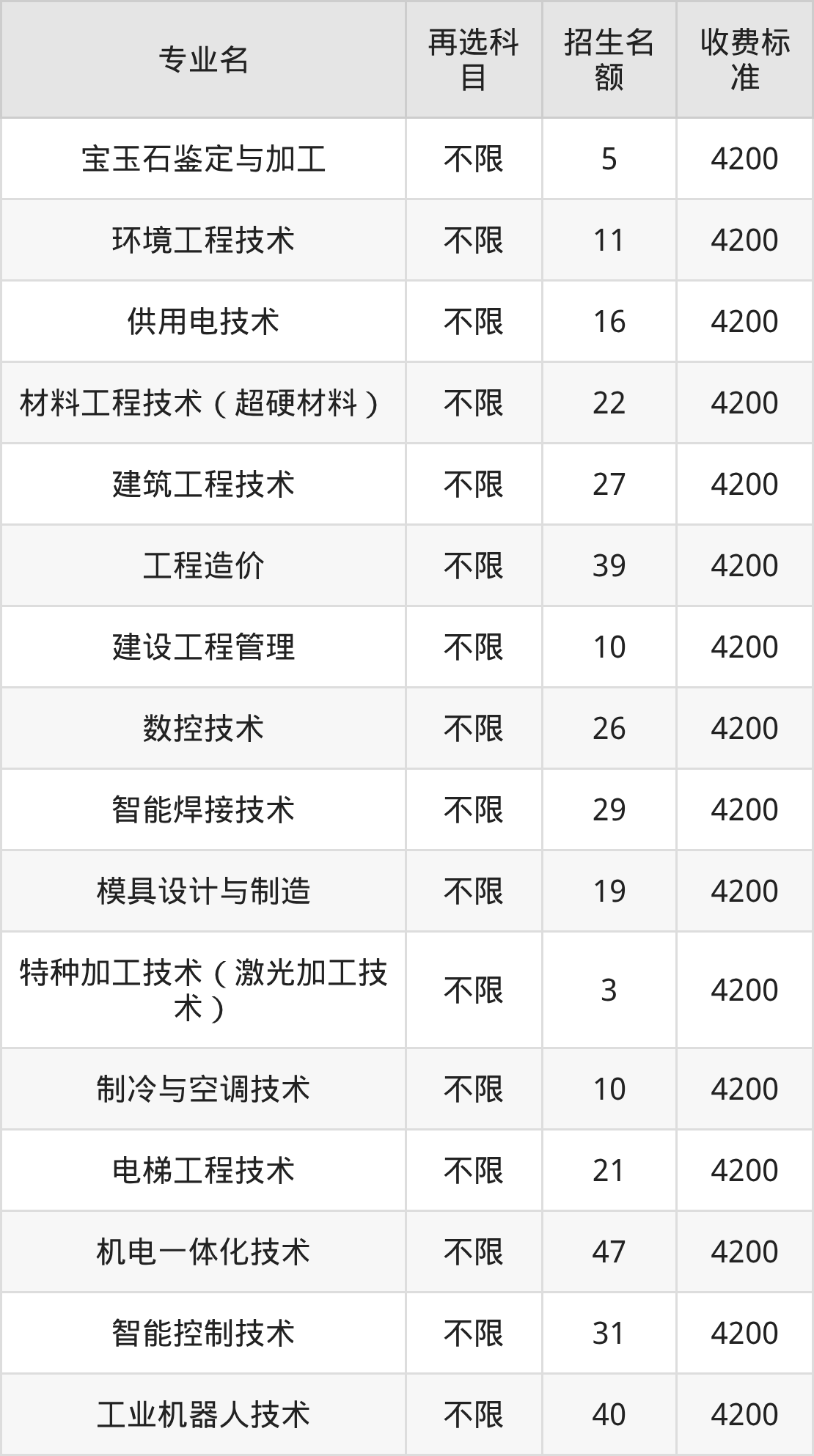 14.机电一体化技术:学费是4200元