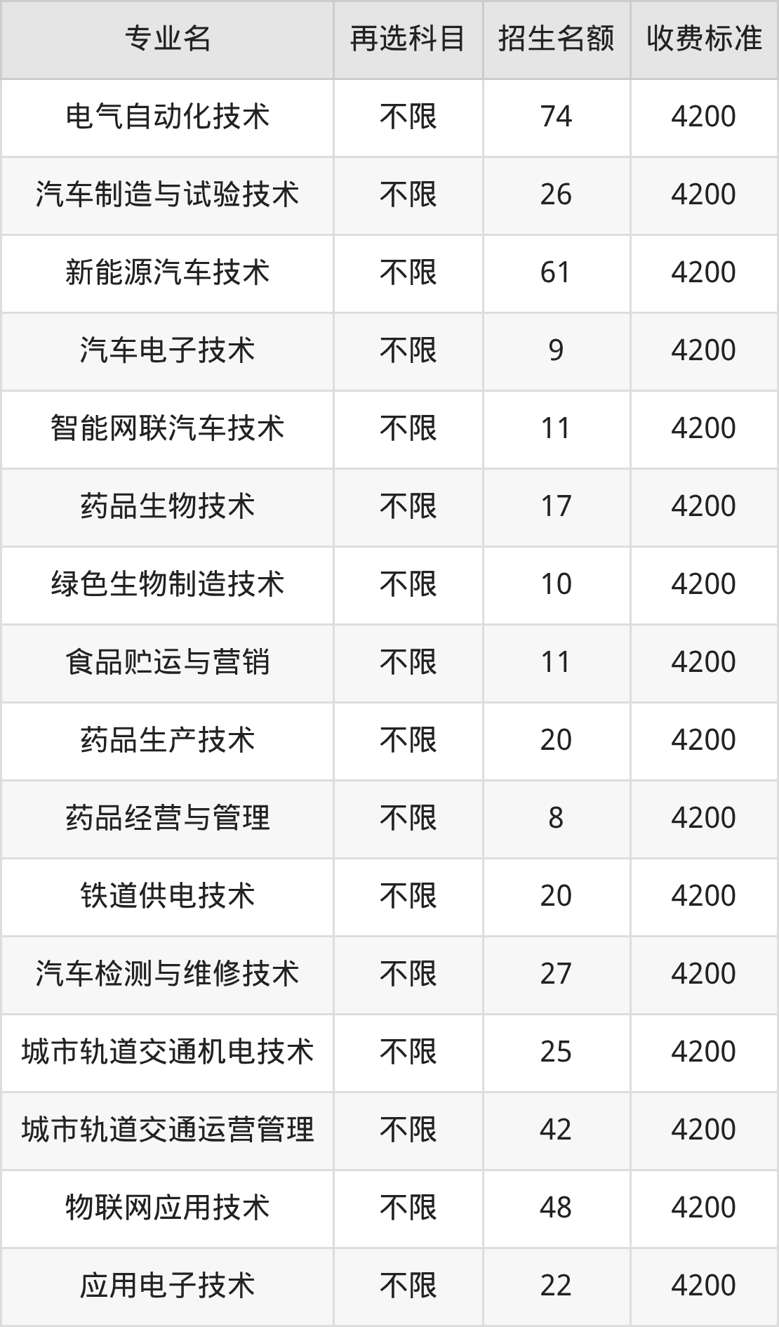 18.汽车制造与试验技术:学费是4200元