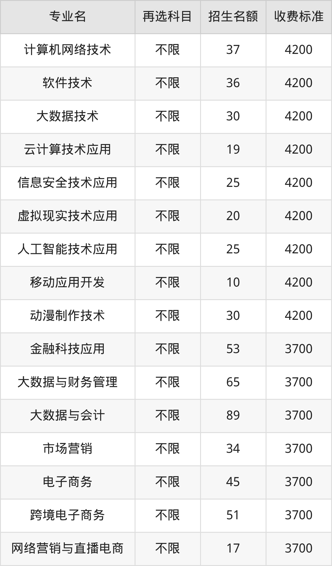 34.软件技术:学费是4200元
