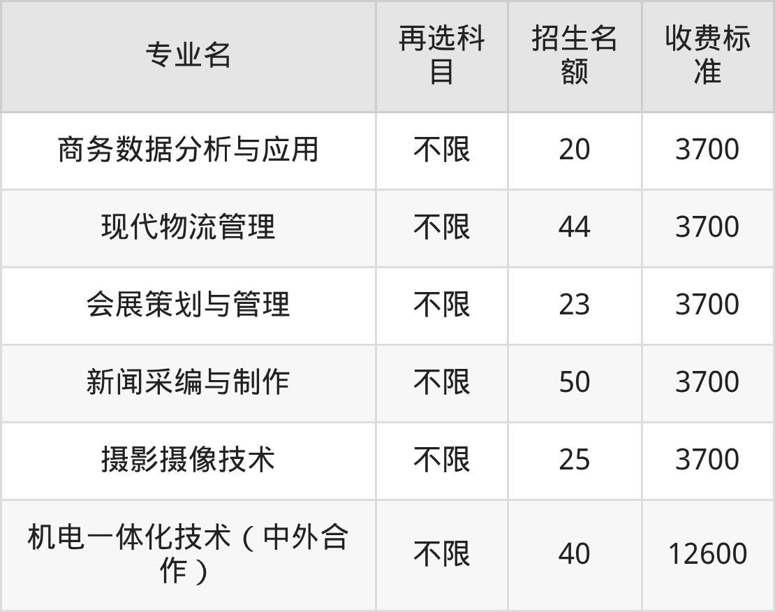 郑州职业技术学院在历史组高职专科批招生的各个专业,每年的学费是3700元-12600元。招生人数最多的专业是大数据与会计,2025年招89人,学费是3700元。