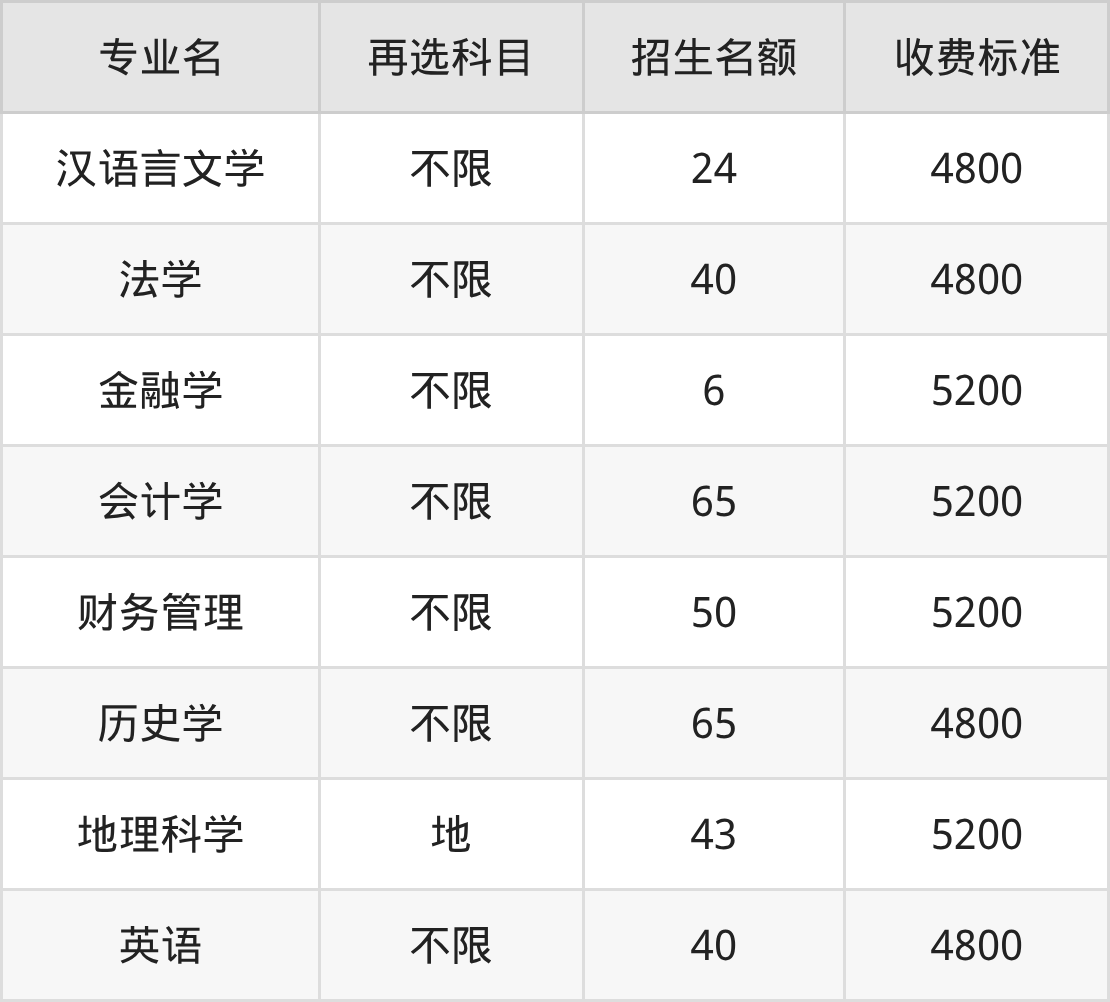 | 本科批 | 历史 | 法学 | 40 |