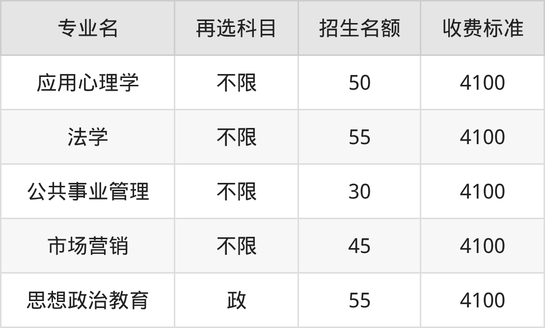 | 本科批 | 历史 | 应用心理学 | 50 |