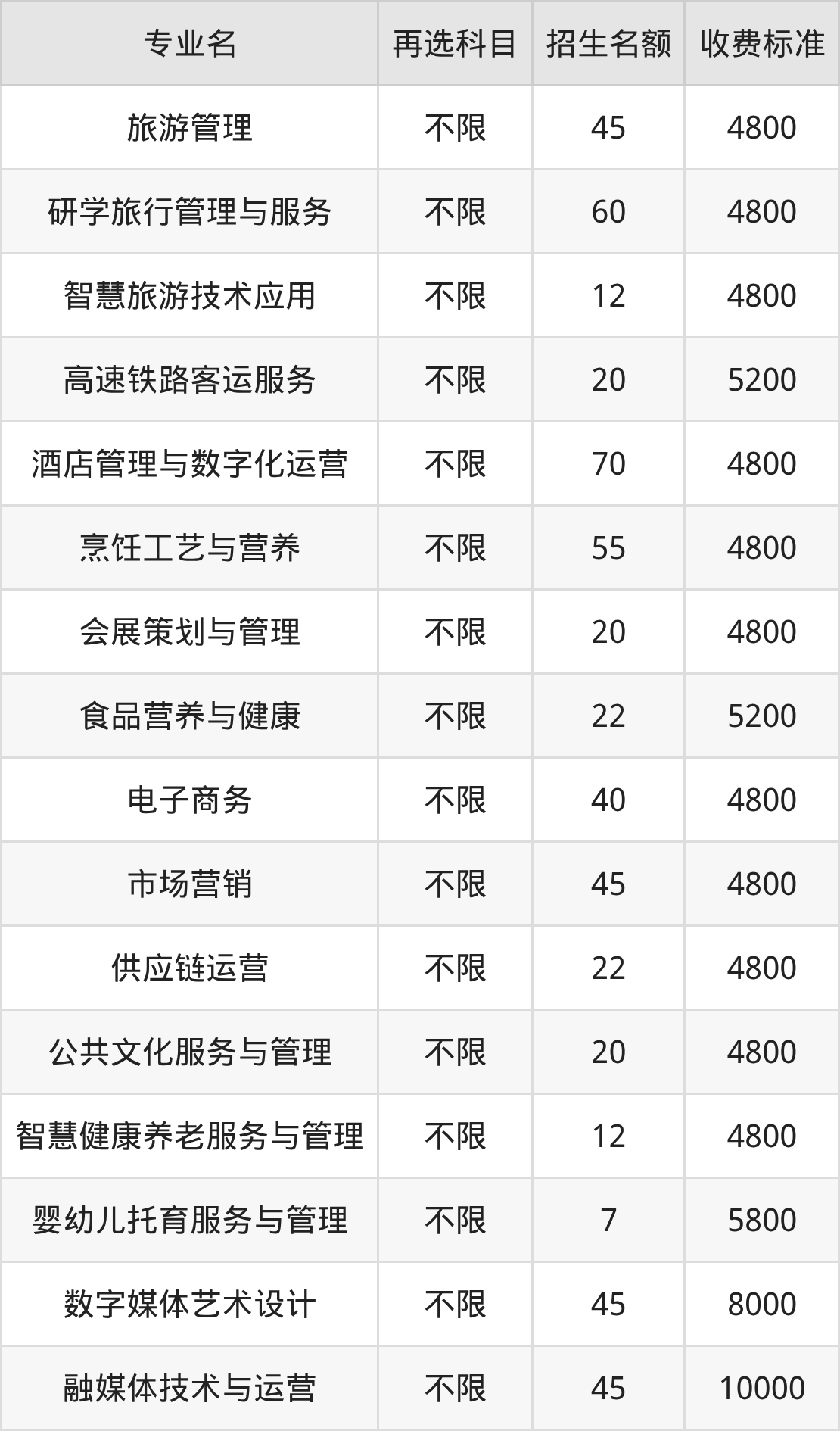 | 高职专科批 | 历史 | 旅游管理 | 45 |
