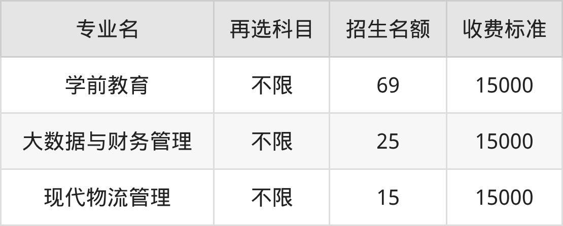 | 批次 | 首选 科目 | 专业名 | 招生 名额 |