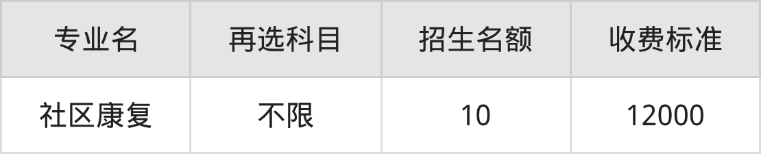 | 高职专科批 | 历史 | 社区康复 | 10 |