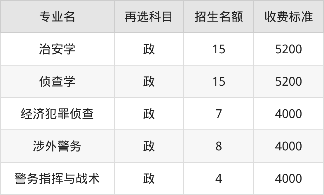 | 本科提前批 | 历史 | 警务指挥与战术 | 4 |