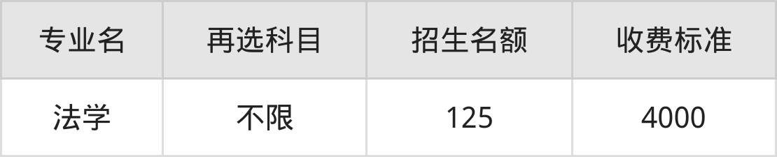| 本科批 | 历史 | 法学 | 125 |