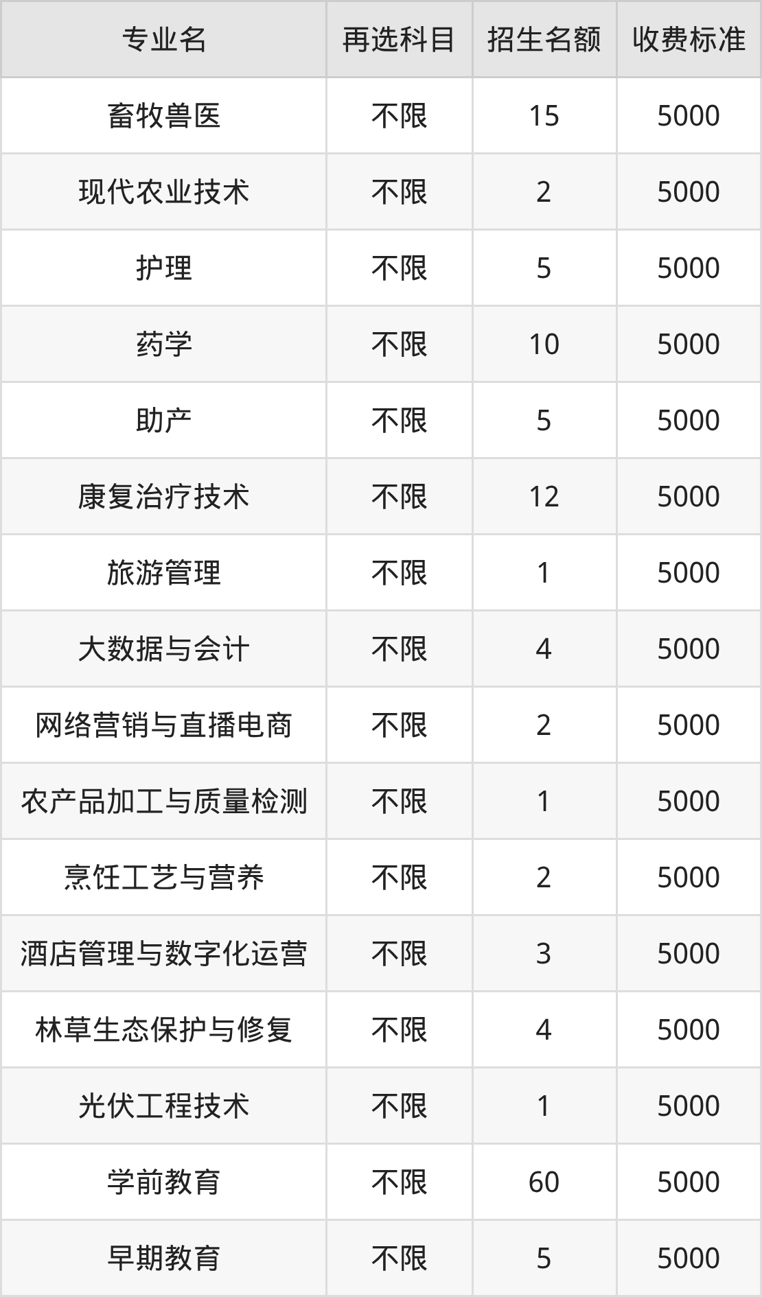 兴安职业技术大学在历史组高职专科批招生的各个专业,每年的学费是5000元。招生人数最多的专业是学前教育,2025年招60人,学费是5000元。