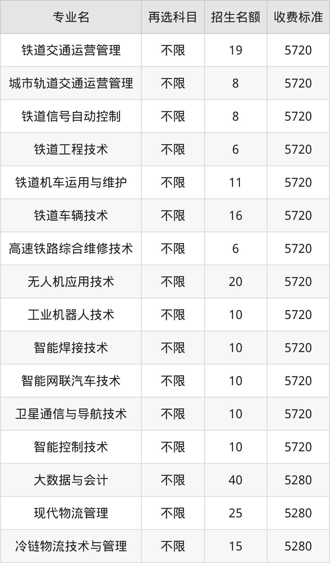 | 高职专科批 | 物理 | 现代物流管理 | 20 |