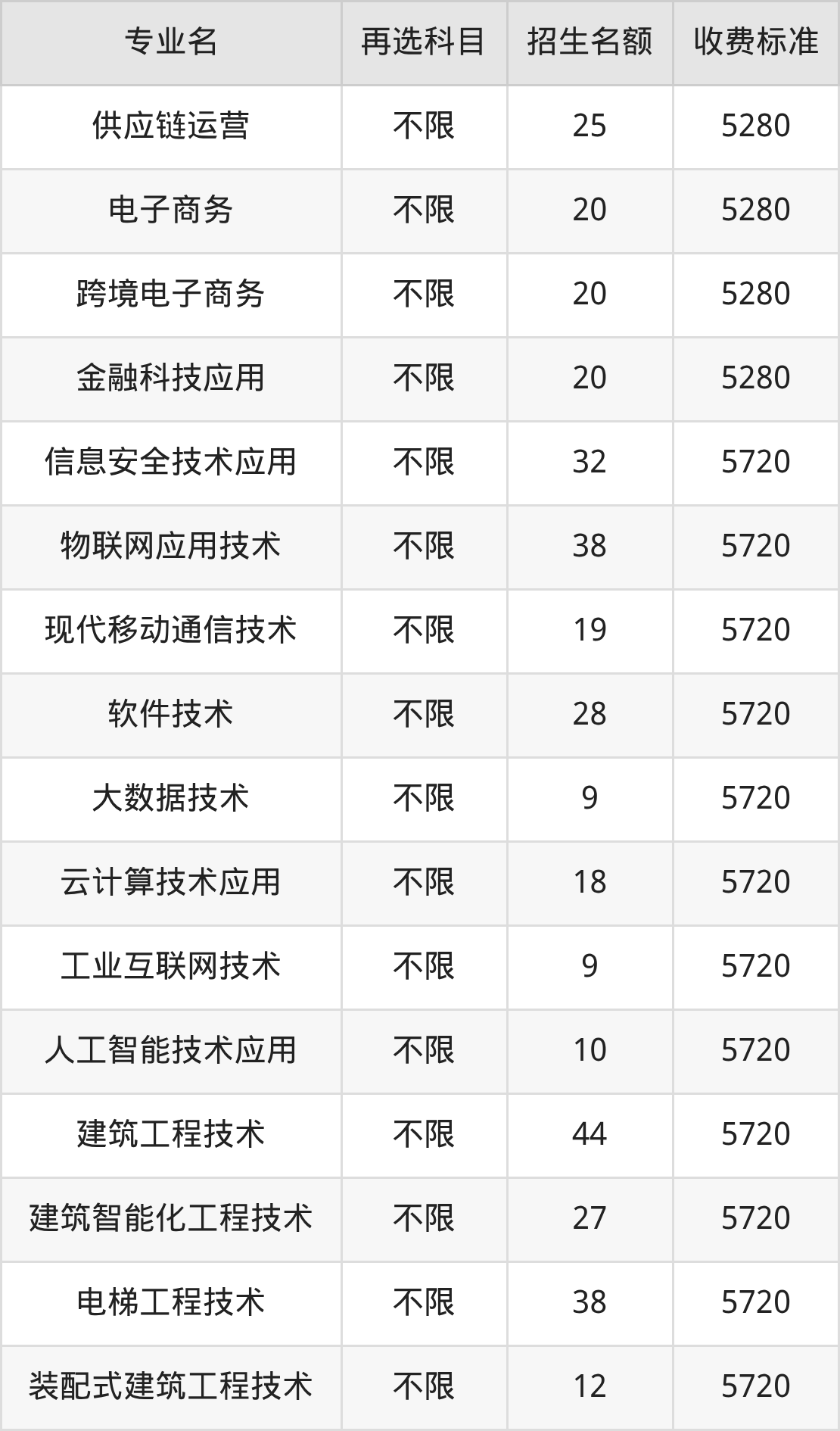 | 高职专科批 | 物理 | 供应链运营 | 10 |