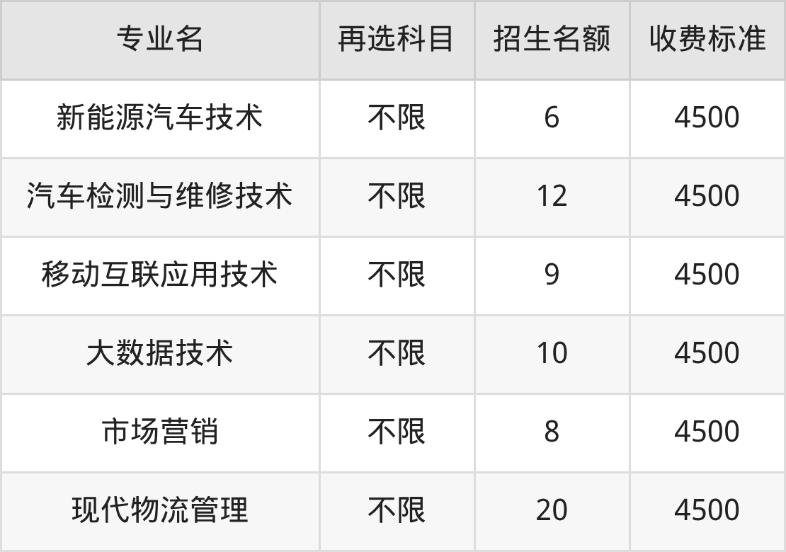 | 高职专科批 | 物理 | 新能源汽车技术 | 10 |