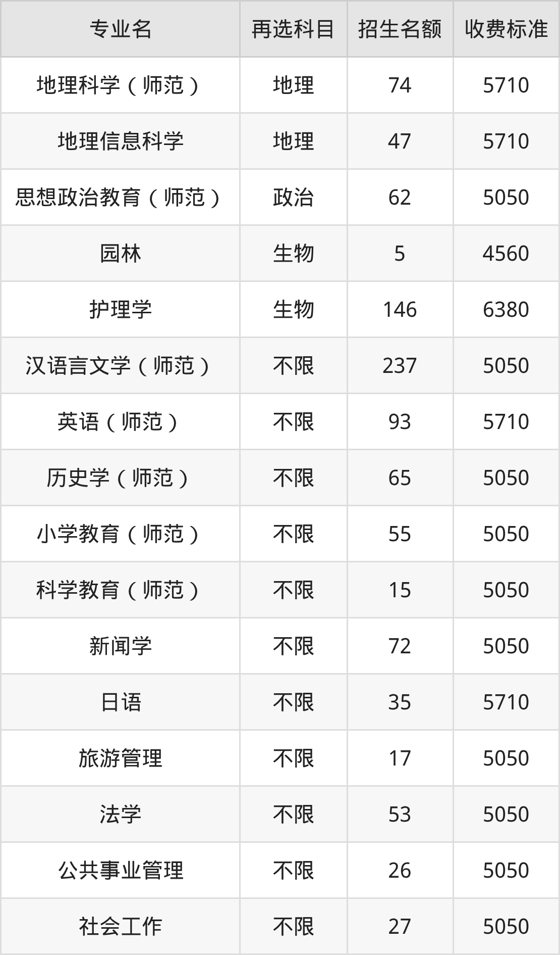28.地理科学(师范):学费是5710元