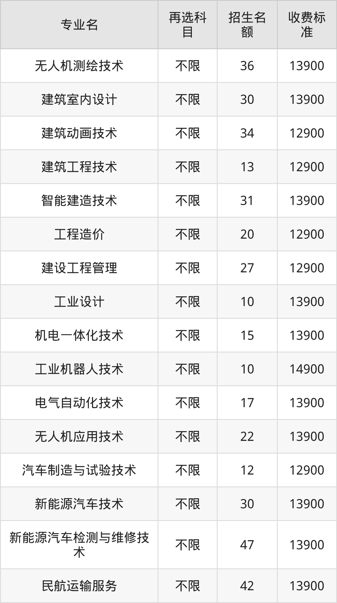 12.无人机应用技术:学费是13900元