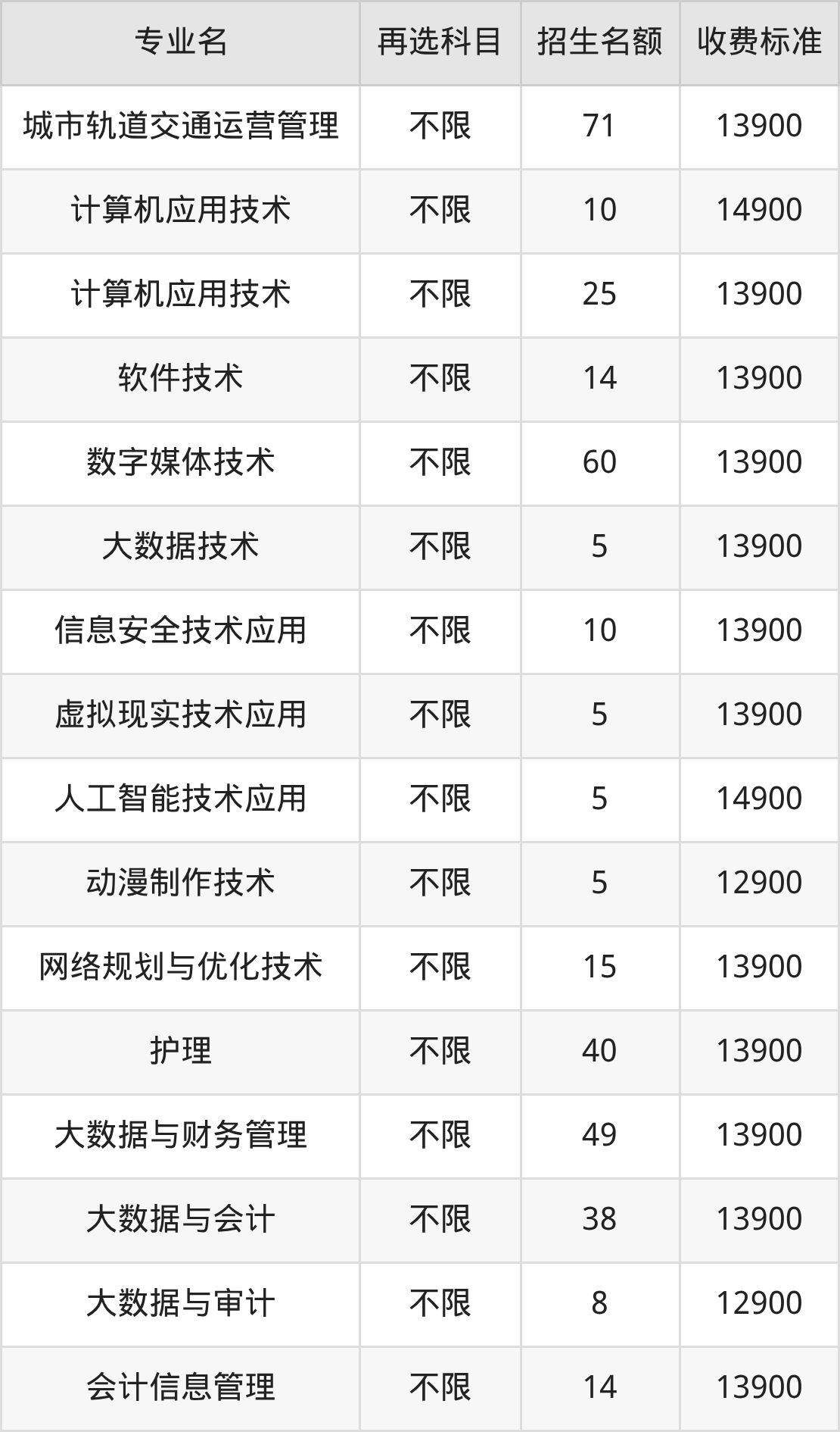 20.计算机应用技术:学费是14900元