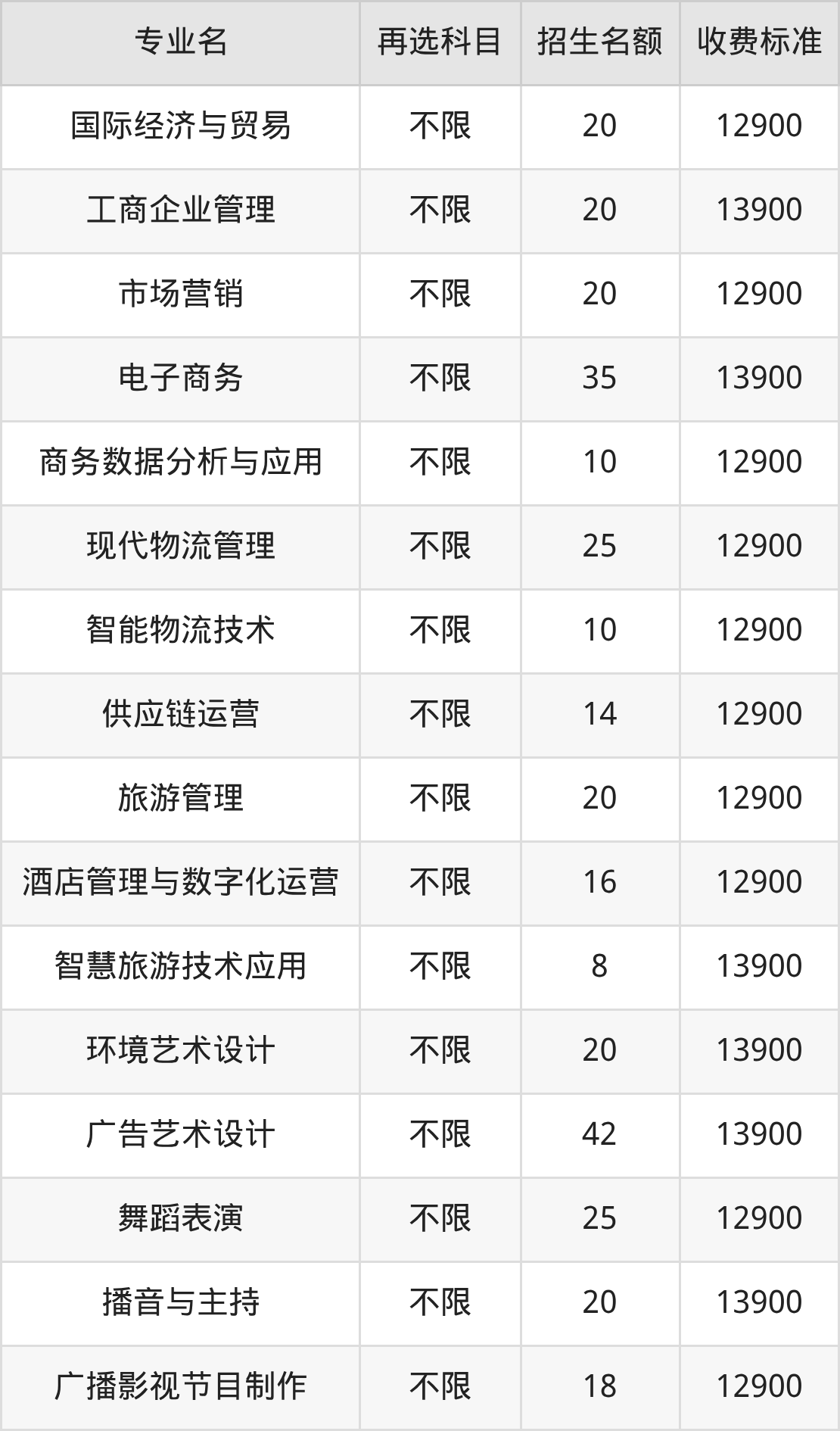 | 专科批 | 历史 | 酒店管理与数字化运营 | 16 |